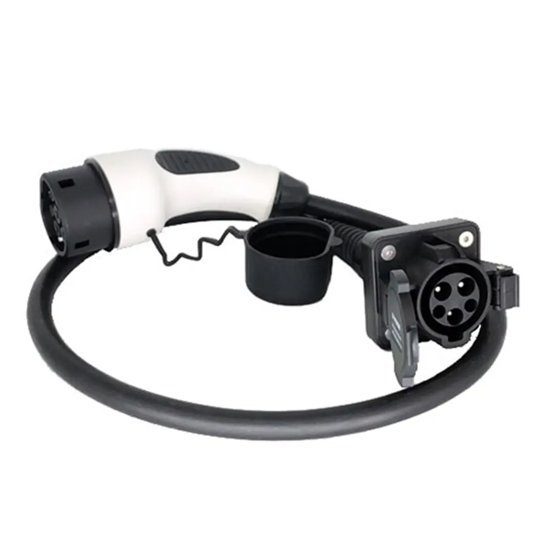Adapter vom Typ 1 auf Typ 2 für EV-Kabel und -Stecker, mit dem ein Typ-1-Ladekabel zum Laden eines Typ-2-Elektrofahrzeugs verwendet werden kann.